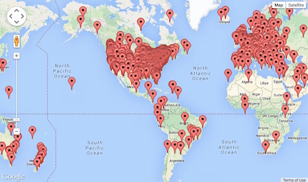 For a good time, I geo-located the subscribers from a number of mailing lists, and then plotted them on a Google map. In other words, I asked the question, “Where in the world is the mail going?” The answer was sort of surprising.