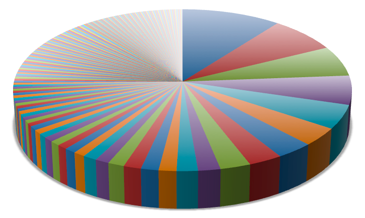 Even though there are as many as 2,000 subscribers, only a tiny few actually post comments. The following pie and line charts illustrate the point without naming any names. As you can see, eleven (11) people contribute 50% of the postings.